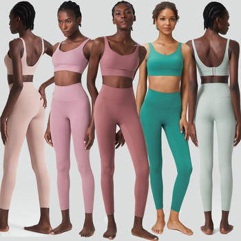 Kıvılcım özel Logo kadın katı spor dikişsiz Activewear spor giyim Yoga 5 parça Suit